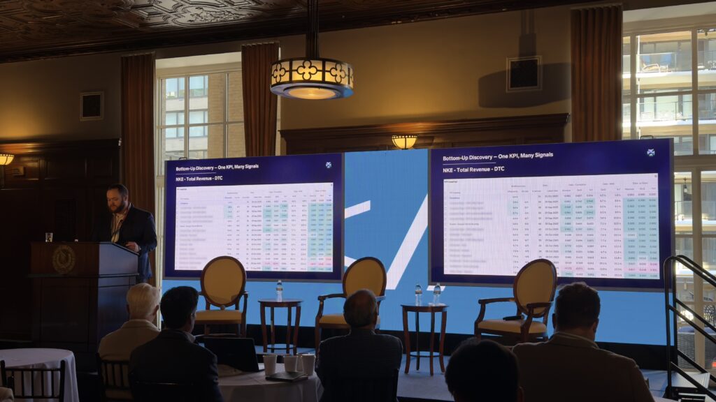 First up on the stage was Director of Research, Gene Gallagher, to show investors how to improve model accuracy and unlock profitability forecasting by incorporating machine learning models into their investment research.